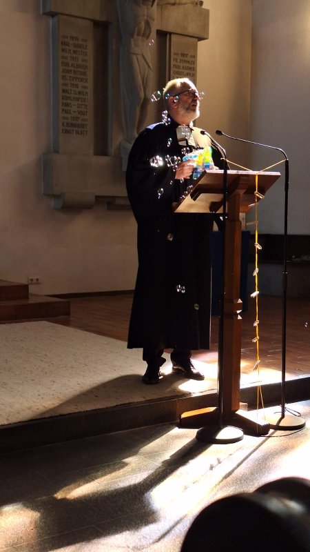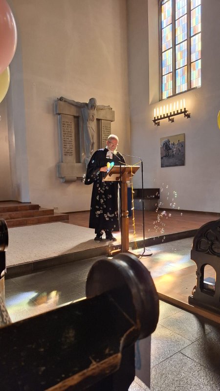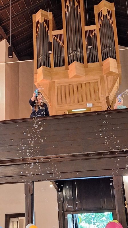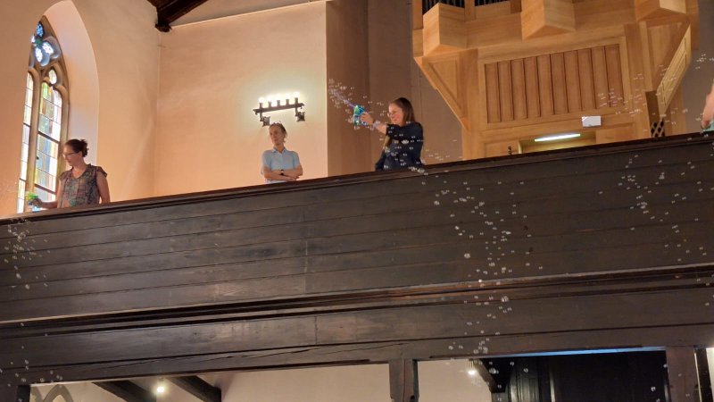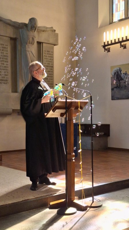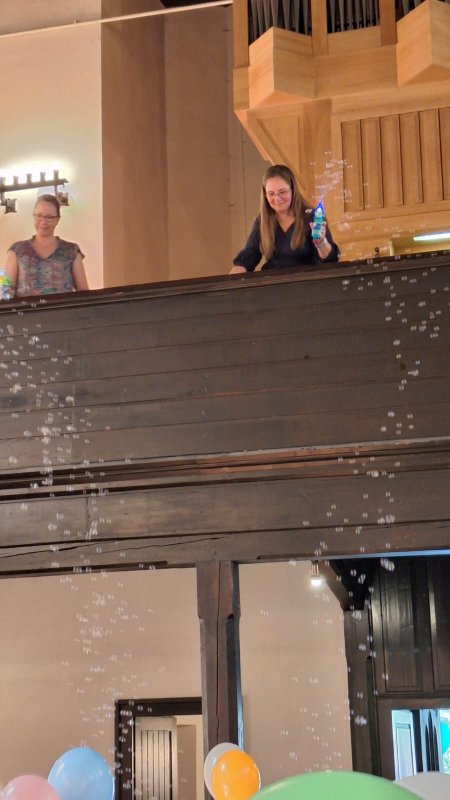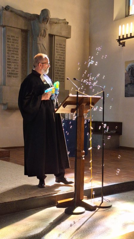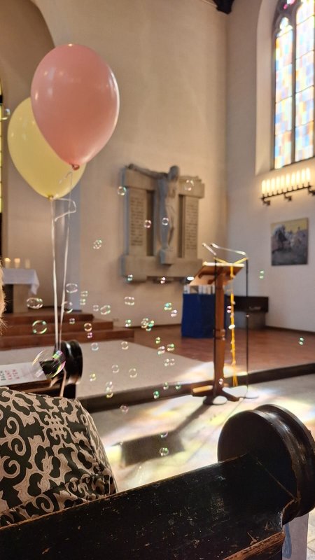 Am 29. Juni feierten wir gemeinsam einen stimmungsvollen Tauferinnerungsgottesdienst in der Kreuzkirche. Die Kinder erinnerten sich daran, dass sie von Gott getragen und begleitet werden – so leicht und bunt wie eine Seifenblase im Wind.